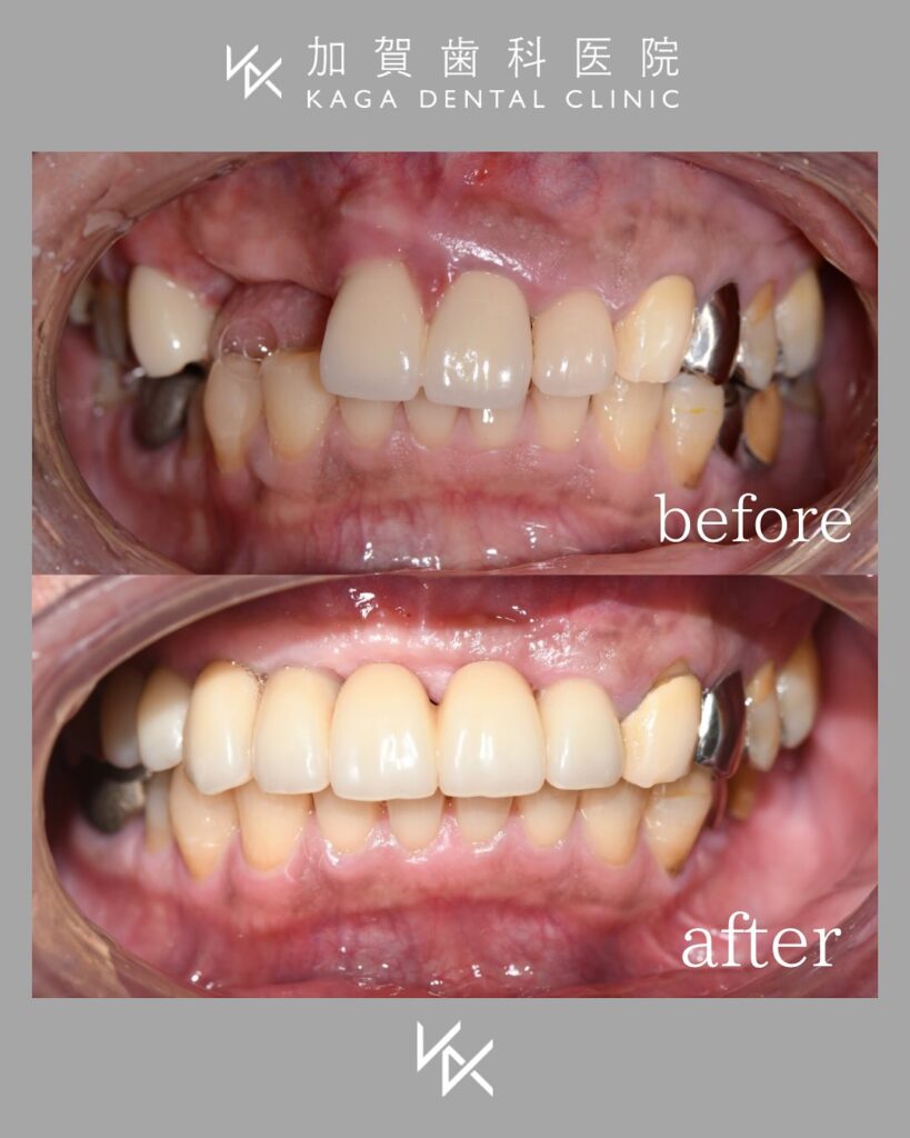 残存歯の保存が困難と判断し、オールオンフォー治療を選択しました。