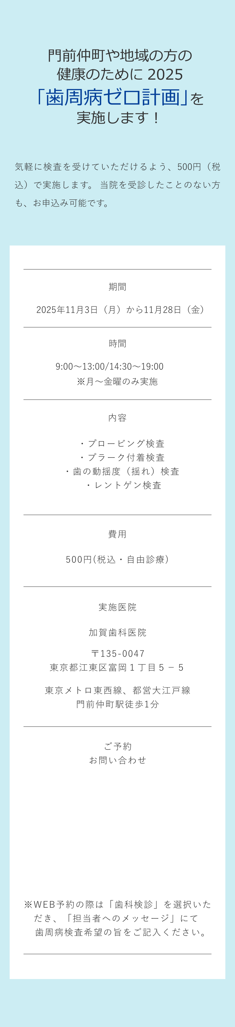 門前仲町や地域の方の健康のために2024「歯周病ゼロ計画」を実施